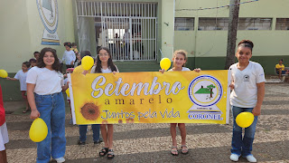 No dia 19 de setembro realizamos juntamente com o Grêmio Estudantil a "Caminhada Setembro Amarelo" envolvendo todos os alunos, professores e funcionários dessa unidade escolar. Convidamos também as famílias para caminharmos juntos. Durante a caminhada todos levaram balões amarelos e o carro de som acompanhou com músicas de respeito e amor a vida.